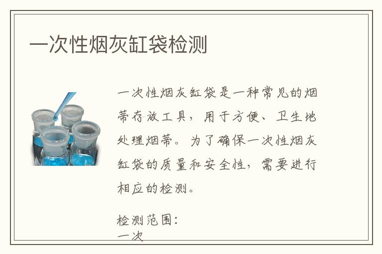 關(guān)鍵詞:一次性煙灰缸袋測試機構(gòu),一次性煙灰缸袋測試方法,一次性煙灰缸袋測試范圍