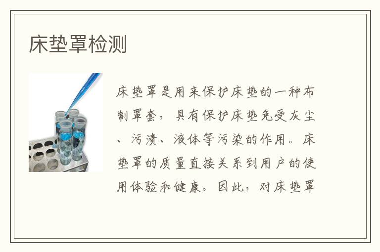 關(guān)鍵詞:床墊罩測(cè)試方法,床墊罩測(cè)試周期,床墊罩測(cè)試機(jī)構(gòu)