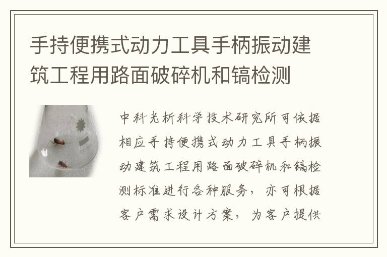 關(guān)鍵詞:手持便攜式動(dòng)力工具手柄振動(dòng)建筑工程用路面破碎機(jī)和鎬項(xiàng)目報(bào)價(jià),手持便攜式動(dòng)力工具手柄振動(dòng)建筑工程用路面破碎機(jī)和鎬測(cè)試機(jī)構(gòu),手持便攜式動(dòng)力工具手柄振動(dòng)建筑工程用路面
