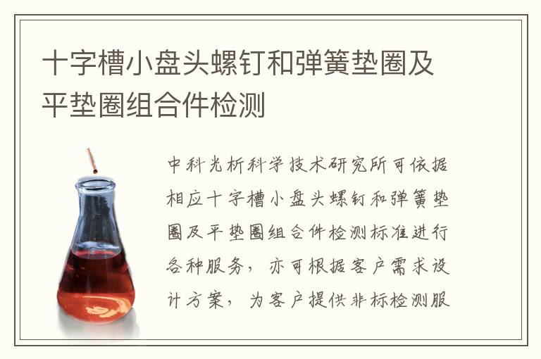 關鍵詞:十字槽小盤頭螺釘和彈簧墊圈及平墊圈組合件測試周期,十字槽小盤頭螺釘和彈簧墊圈及平墊圈組合件測試方法,十字槽小盤頭螺釘和彈簧墊圈及平墊圈組合件項目報價