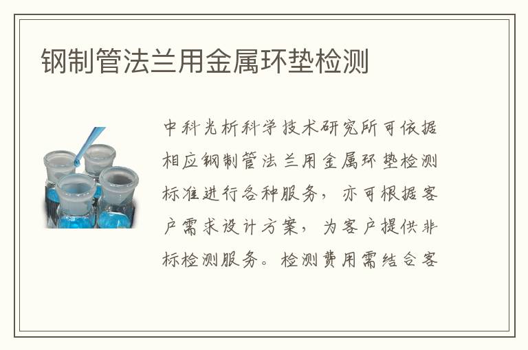 關(guān)鍵詞:鋼制管法蘭用金屬環(huán)墊測(cè)試周期,鋼制管法蘭用金屬環(huán)墊測(cè)試范圍,鋼制管法蘭用金屬環(huán)墊測(cè)試標(biāo)準(zhǔn)