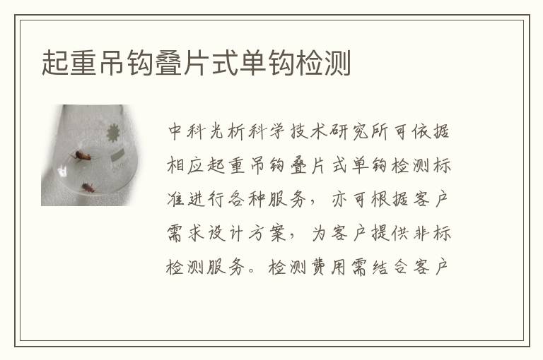 關(guān)鍵詞:起重吊鉤疊片式單鉤測試機(jī)構(gòu),起重吊鉤疊片式單鉤測試周期,起重吊鉤疊片式單鉤項(xiàng)目報(bào)價(jià)