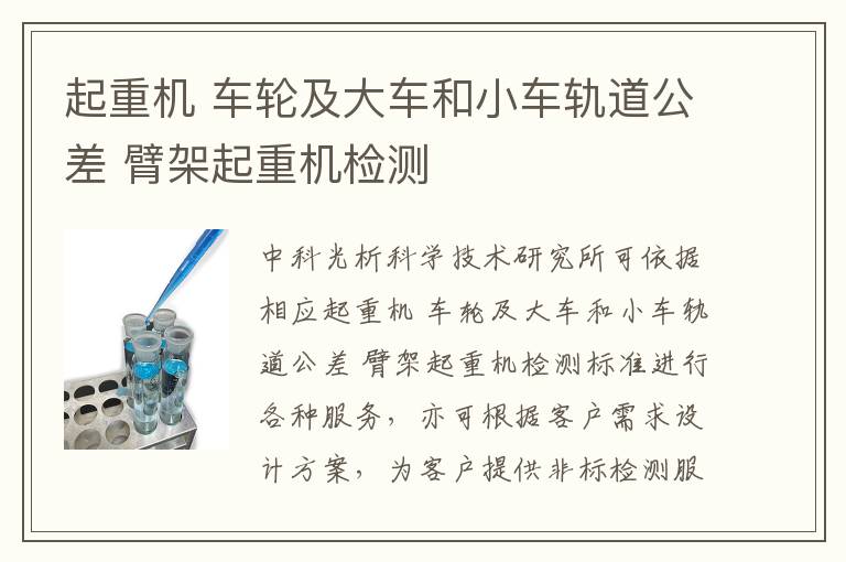 關(guān)鍵詞:起重機(jī)車輪及大車和小車軌道公差臂架起重機(jī)測試標(biāo)準(zhǔn),起重機(jī)車輪及大車和小車軌道公差臂架起重機(jī)測試儀器,起重機(jī)車輪及大車和小車軌道公差臂架起重機(jī)測試范圍