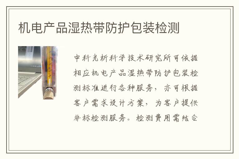 關(guān)鍵詞:機電產(chǎn)品濕熱帶防護包裝測試周期,機電產(chǎn)品濕熱帶防護包裝測試標(biāo)準(zhǔn),機電產(chǎn)品濕熱帶防護包裝測試機構(gòu)