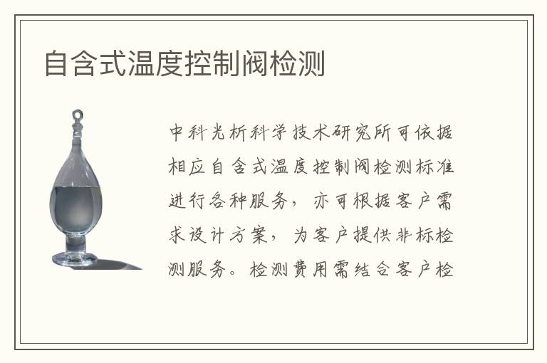 自含式溫度控制閥是工業(yè)中常用的一種控制閥,為確保其正常運(yùn)行和安全性能,需要進(jìn)行定期的檢測。下面將介紹自含式溫度控制閥的檢測范圍、檢測項(xiàng)目、檢測方法和檢測儀器以及其服務(wù)優(yōu)勢。