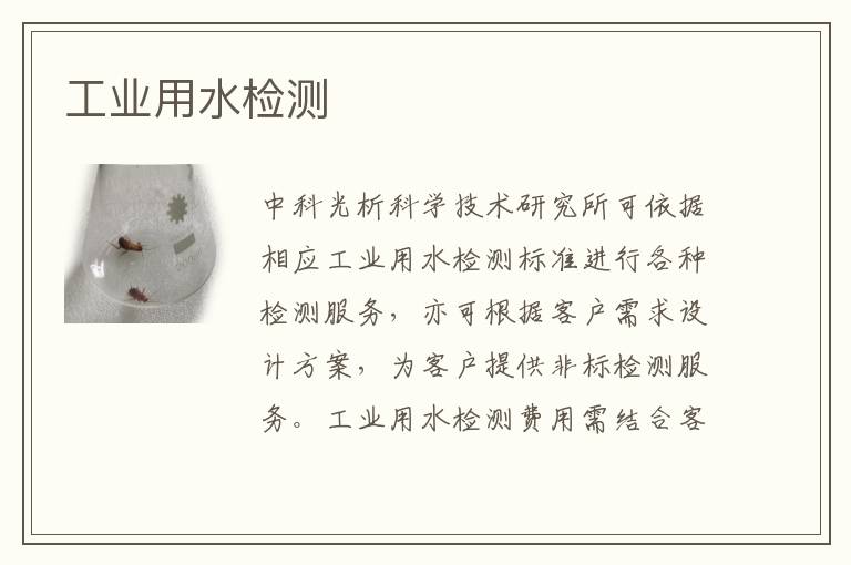 關(guān)鍵詞:工業(yè)用水測試范圍,工業(yè)用水測試儀器,工業(yè)用水測試周期