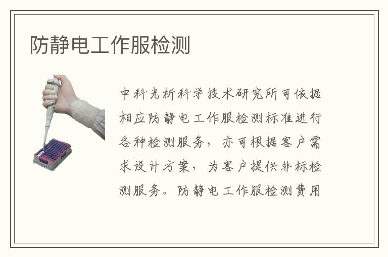 關(guān)鍵詞:防靜電工作服測(cè)試范圍,防靜電工作服測(cè)試標(biāo)準(zhǔn),防靜電工作服測(cè)試儀器