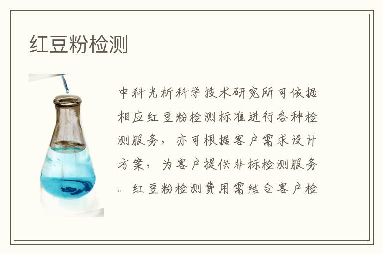關(guān)鍵詞:紅豆粉測試周期,紅豆粉測試案例,紅豆粉測試方法