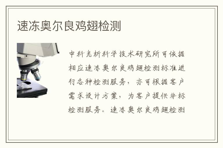 關鍵詞:速凍奧爾良雞翅測試機構(gòu),速凍奧爾良雞翅測試范圍,速凍奧爾良雞翅測試方法