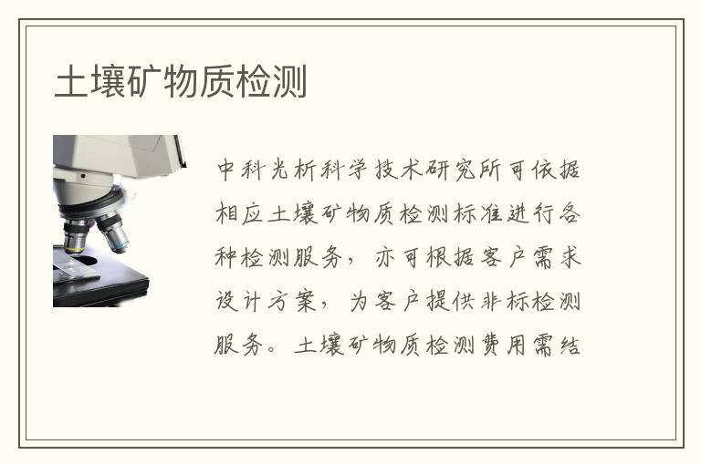 關(guān)鍵詞:土壤礦物質(zhì)測試機(jī)構(gòu),土壤礦物質(zhì)測試周期,土壤礦物質(zhì)測試方法