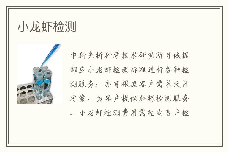 關(guān)鍵詞:小龍蝦項目報價,小龍蝦測試周期,小龍蝦測試儀器