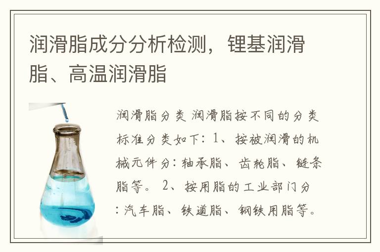 關(guān)鍵詞:潤(rùn)滑脂成分分析測(cè)試儀器,潤(rùn)滑脂成分分析測(cè)試方法,潤(rùn)滑脂成分分析測(cè)試周期