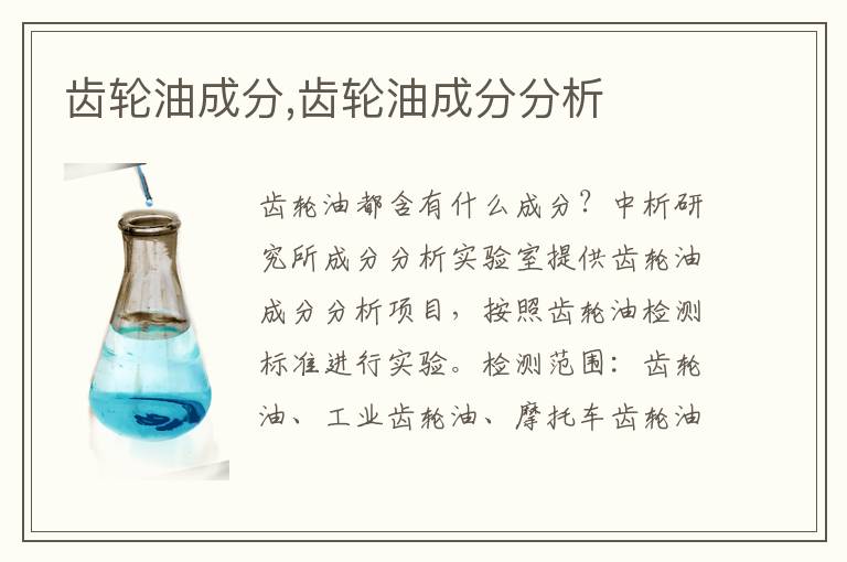 關(guān)鍵詞:齒輪油成分測試儀器,齒輪油成分項目報價,齒輪油成分測試范圍