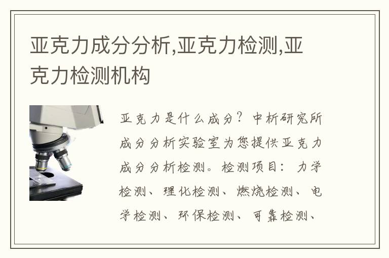 關(guān)鍵詞:亞克力成分分析項(xiàng)目報(bào)價(jià),亞克力成分分析測試案例,亞克力成分分析測試周期
