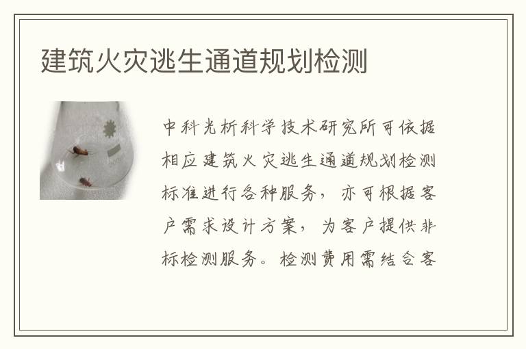 關(guān)鍵詞:建筑火災(zāi)逃生通道規(guī)劃測(cè)試范圍,建筑火災(zāi)逃生通道規(guī)劃項(xiàng)目報(bào)價(jià),建筑火災(zāi)逃生通道規(guī)劃測(cè)試周期