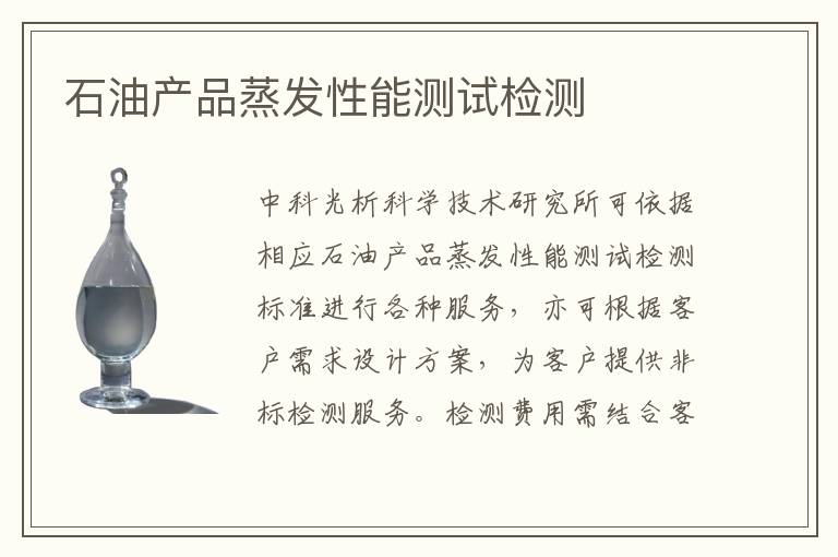 關(guān)鍵詞:石油產(chǎn)品蒸發(fā)性能測試測試周期,石油產(chǎn)品蒸發(fā)性能測試測試范圍,石油產(chǎn)品蒸發(fā)性能測試測試案例
