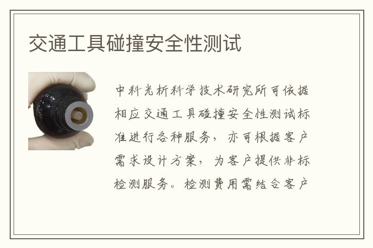 關(guān)鍵詞:交通工具碰撞安全性測(cè)試測(cè)試范圍,交通工具碰撞安全性測(cè)試測(cè)試儀器,交通工具碰撞安全性測(cè)試測(cè)試方法
