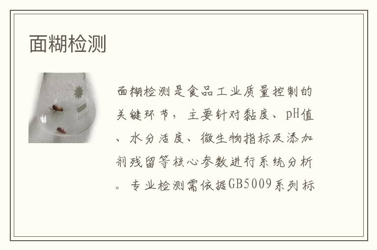 固含量檢測(cè):測(cè)量面糊中非揮發(fā)性物質(zhì)的百分比,固含量過(guò)高或過(guò)低會(huì)影響干燥時(shí)間和最終產(chǎn)品質(zhì)地,需通過(guò)加熱失重法精確測(cè)定。