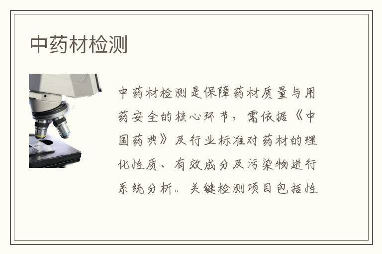 關(guān)鍵詞:中藥材測(cè)試范圍,中藥材測(cè)試周期,中藥材項(xiàng)目報(bào)價(jià)