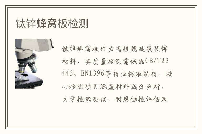 關(guān)鍵詞:鈦鋅蜂窩板檢測標準,鈦鋅蜂窩板項檢測報價,鈦鋅蜂窩板檢測周期