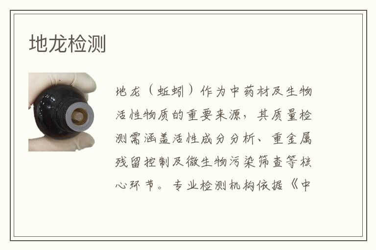 地龍傳統(tǒng)制劑:如丸散膏丹中的地龍成分,需檢測配伍穩(wěn)定性和有效性,確保傳統(tǒng)用藥安全。