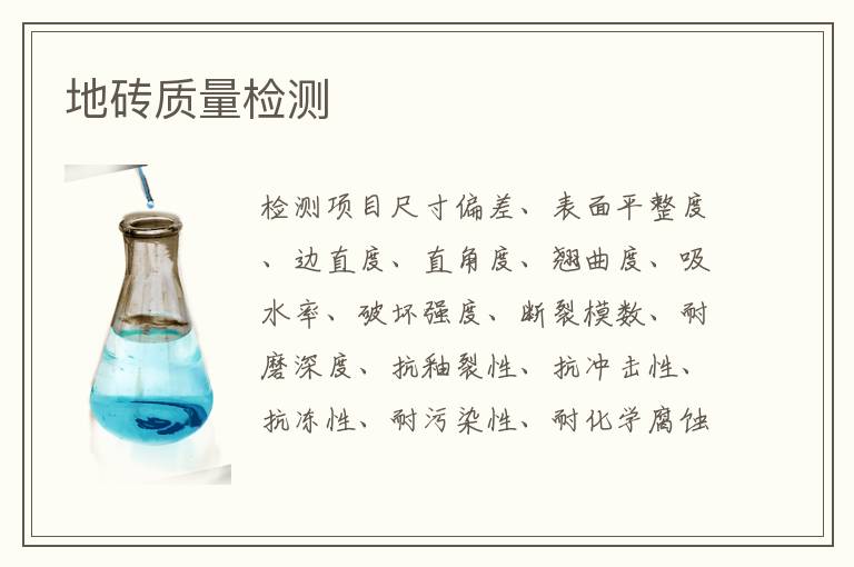 尺寸偏差、表面平整度、邊直度、直角度、翹曲度、吸水率、破壞強度、斷裂模數、耐磨深度、抗釉裂性、抗沖擊性、抗凍性、耐污染性、耐化學腐蝕性、濕膨脹系數、摩擦系數、放射性核素限量、重金屬溶出量、色差均勻度、光澤度、抗滑移性、熱穩(wěn)定性、濕態(tài)防滑值、抗靜電性、抗菌性能、甲醛釋放量、VOC含量、燃燒性能、聲學阻抗、導熱系數
