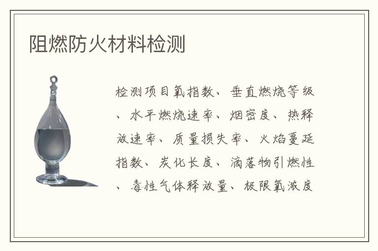 氧指數(shù)、垂直燃燒等級、水平燃燒速率、煙密度、熱釋放速率、質(zhì)量損失率、火焰蔓延指數(shù)、炭化長度、滴落物引燃性、毒性氣體釋放量、極限氧濃度、耐火極限時間、表面燃燒特性、陰燃持續(xù)時間、熔融溫度、熱傳導(dǎo)系數(shù)、發(fā)煙速率、CO生成量、CO?生成量、HF釋放量、HCl釋放量、SO?釋放量、NOx釋放量、灼熱絲可燃性指數(shù)、針焰試驗結(jié)果、耐電弧性、介電強度衰減率、高溫尺寸穩(wěn)定性、熱解溫度區(qū)間、殘渣質(zhì)量百分比