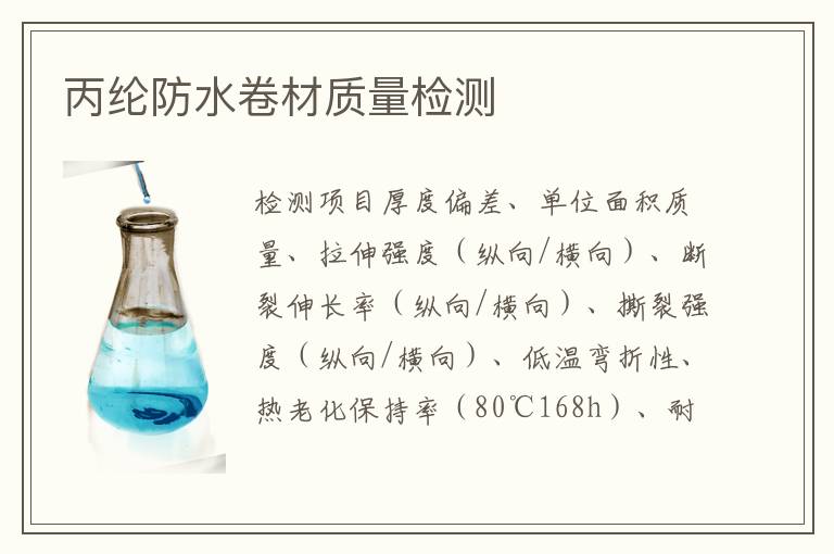 關(guān)鍵詞:丙綸防水卷材質(zhì)量測(cè)試周期,丙綸防水卷材質(zhì)量測(cè)試機(jī)構(gòu),丙綸防水卷材質(zhì)量測(cè)試范圍