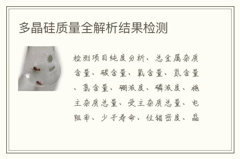 關(guān)鍵詞:多晶硅質(zhì)量全解析結(jié)果測(cè)試周期,多晶硅質(zhì)量全解析結(jié)果測(cè)試標(biāo)準(zhǔn),多晶硅質(zhì)量全解析結(jié)果測(cè)試方法