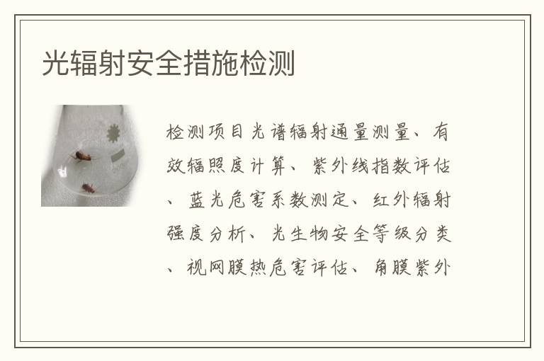 關(guān)鍵詞:光輻射安全措施測(cè)試機(jī)構(gòu),光輻射安全措施測(cè)試標(biāo)準(zhǔn),光輻射安全措施測(cè)試方法