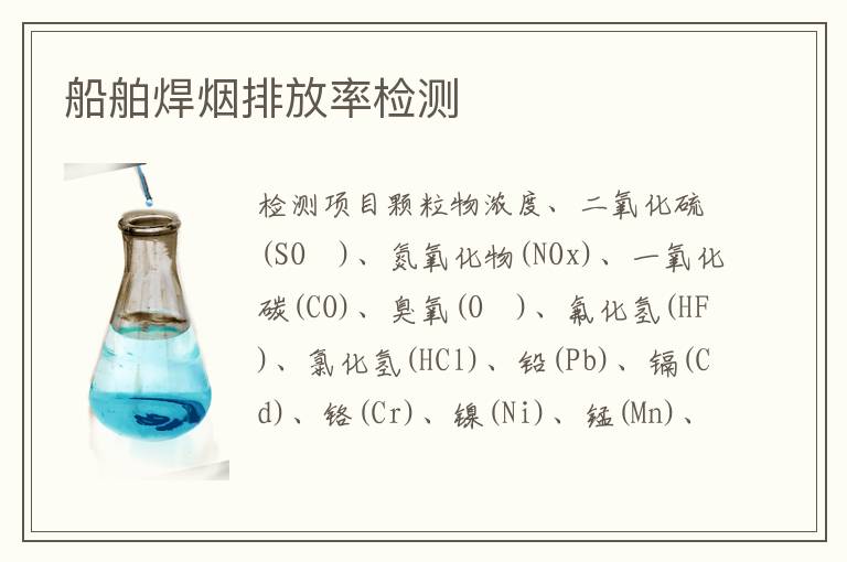 關(guān)鍵詞:船舶焊煙排放率測試儀器,船舶焊煙排放率測試機(jī)構(gòu),船舶焊煙排放率測試方法
