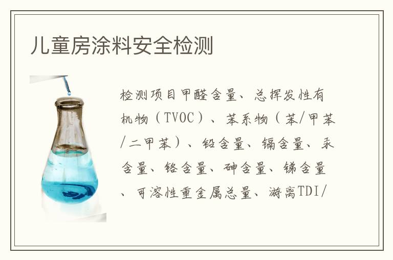 關(guān)鍵詞:兒童房涂料安全測(cè)試方法,兒童房涂料安全測(cè)試周期,兒童房涂料安全測(cè)試儀器