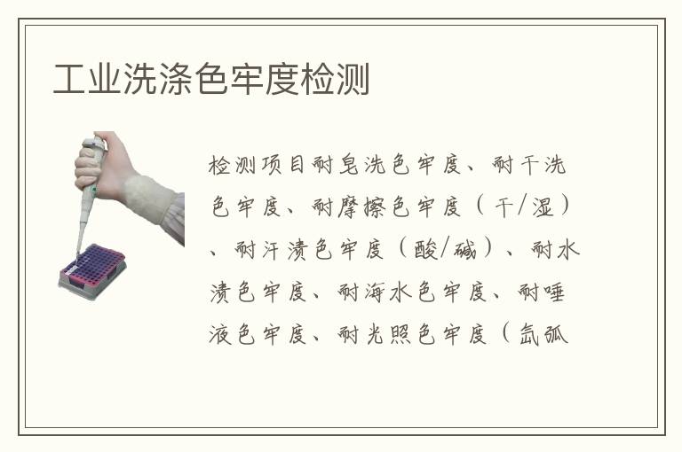 關(guān)鍵詞:工業(yè)洗滌色牢度測(cè)試周期,工業(yè)洗滌色牢度測(cè)試機(jī)構(gòu),工業(yè)洗滌色牢度測(cè)試標(biāo)準(zhǔn)