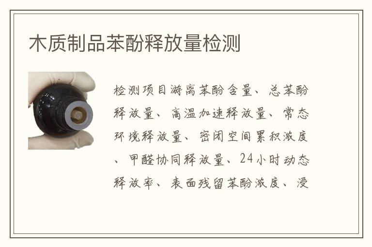 苯酚釋放量測(cè)定:通過標(biāo)準(zhǔn)方法測(cè)量木質(zhì)制品在特定環(huán)境條件下釋放的苯酚濃度,評(píng)估其潛在健康風(fēng)險(xiǎn)和合規(guī)性,確保結(jié)果準(zhǔn)確可靠。