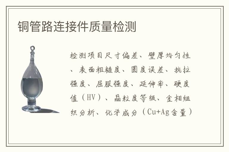 關(guān)鍵詞:銅管路連接件質(zhì)量測(cè)試方法,銅管路連接件質(zhì)量項(xiàng)目報(bào)價(jià),銅管路連接件質(zhì)量測(cè)試范圍