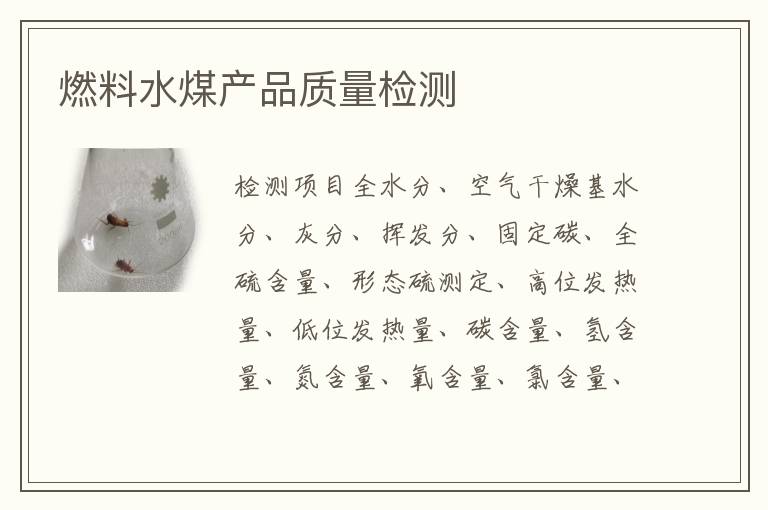 關(guān)鍵詞:燃料水煤產(chǎn)品質(zhì)量測(cè)試案例,燃料水煤產(chǎn)品質(zhì)量測(cè)試標(biāo)準(zhǔn),燃料水煤產(chǎn)品質(zhì)量測(cè)試周期