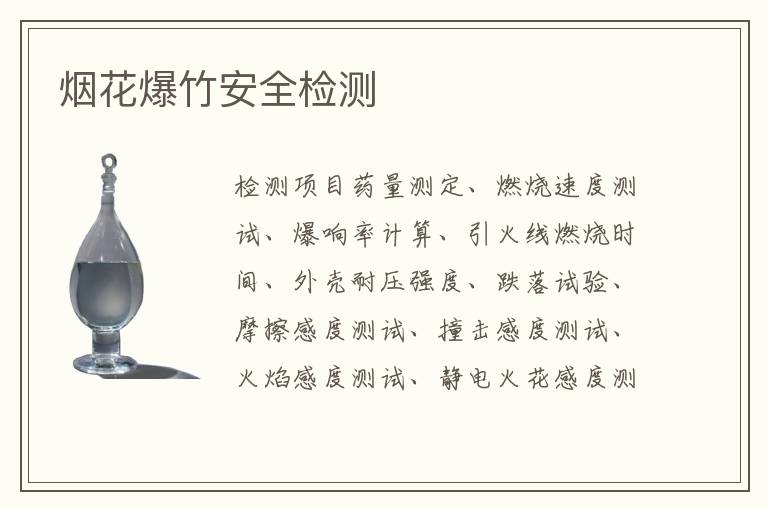 關(guān)鍵詞:煙花爆竹安全測試機(jī)構(gòu),煙花爆竹安全測試儀器,煙花爆竹安全測試標(biāo)準(zhǔn)