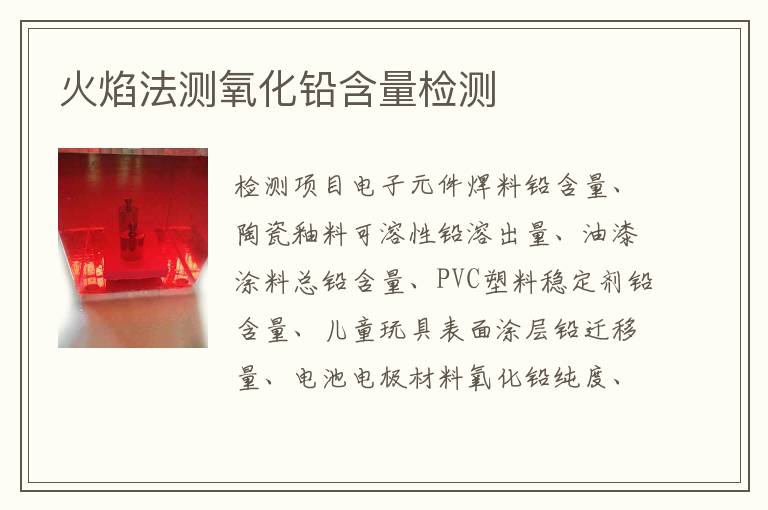 關(guān)鍵詞:火焰法測氧化鉛含量測試標(biāo)準(zhǔn),火焰法測氧化鉛含量測試范圍,火焰法測氧化鉛含量測試周期