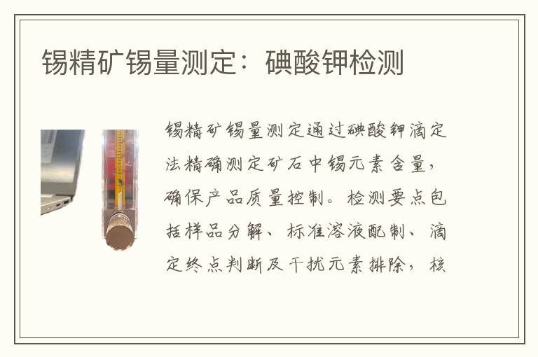 關(guān)鍵詞:錫精礦錫量測定:碘酸鉀測試范圍,錫精礦錫量測定:碘酸鉀測試儀器,錫精礦錫量測定:碘酸鉀測試案例