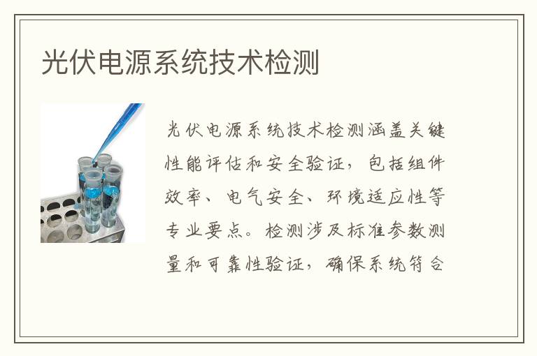 關(guān)鍵詞:光伏電源系統(tǒng)技術(shù)測(cè)試儀器,光伏電源系統(tǒng)技術(shù)測(cè)試標(biāo)準(zhǔn),光伏電源系統(tǒng)技術(shù)測(cè)試周期