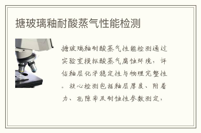 關鍵詞:搪玻璃釉耐酸蒸氣性能測試周期,搪玻璃釉耐酸蒸氣性能測試案例,搪玻璃釉耐酸蒸氣性能項目報價