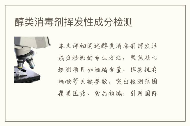 關鍵詞:醇類消毒劑揮發(fā)性成分測試儀器,醇類消毒劑揮發(fā)性成分項目報價,醇類消毒劑揮發(fā)性成分測試方法
