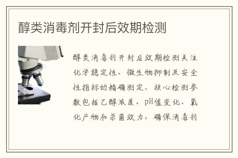 關(guān)鍵詞:醇類消毒劑開封后效期項(xiàng)目報(bào)價(jià),醇類消毒劑開封后效期測試儀器,醇類消毒劑開封后效期測試方法