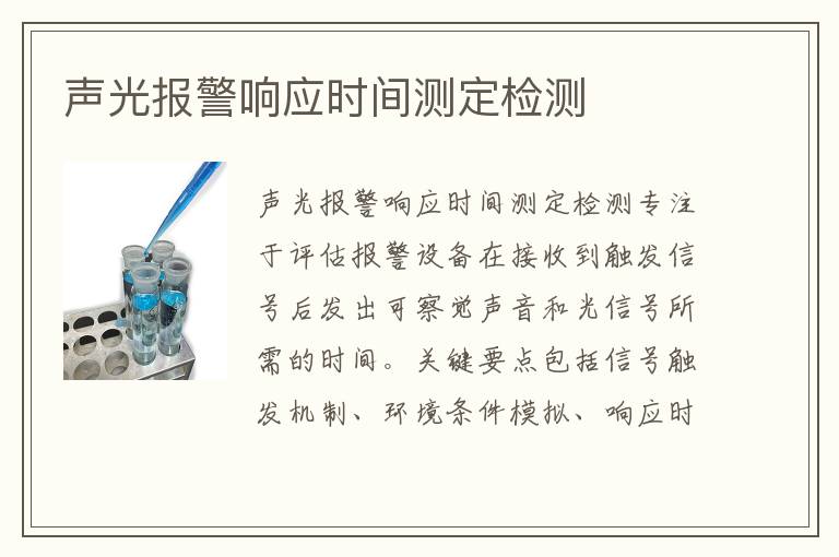 關(guān)鍵詞:聲光報(bào)警響應(yīng)時(shí)間測定測試范圍,聲光報(bào)警響應(yīng)時(shí)間測定測試案例,聲光報(bào)警響應(yīng)時(shí)間測定測試標(biāo)準(zhǔn)