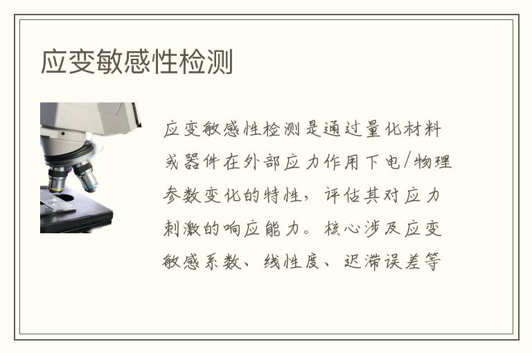 關(guān)鍵詞:應(yīng)變敏感性測(cè)試標(biāo)準(zhǔn),應(yīng)變敏感性測(cè)試范圍,應(yīng)變敏感性測(cè)試機(jī)構(gòu)