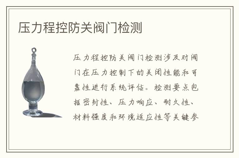 防關(guān)功能驗證檢測:模擬異常工況測試閥門的防意外關(guān)閉機制,驗證其在壓力波動或電源中斷時能否保持開啟狀態(tài),防止系統(tǒng)停機或設(shè)備損壞。