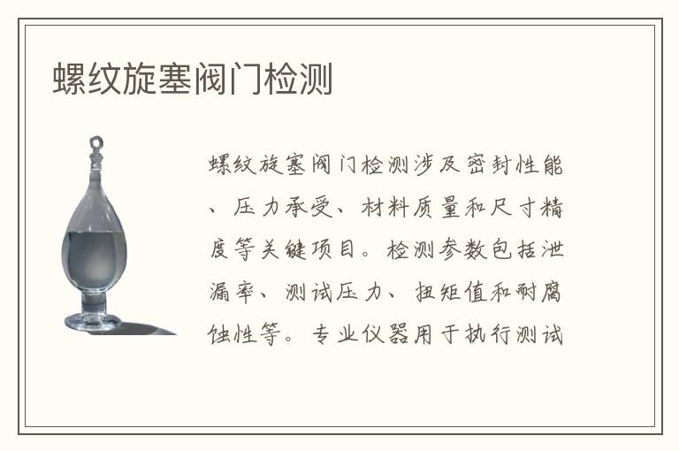 關鍵詞:螺紋旋塞閥門測試周期,螺紋旋塞閥門項目報價,螺紋旋塞閥門測試機構