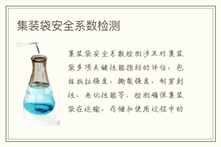 關(guān)鍵詞:集裝袋安全系數(shù)測試周期,集裝袋安全系數(shù)測試儀器,集裝袋安全系數(shù)測試案例