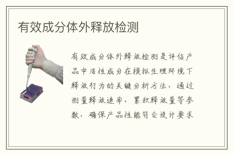 累積釋放量檢測:測量在一定時(shí)間范圍內(nèi)總釋放的有效成分量,用于確定產(chǎn)品的釋放效率和完整性,支持質(zhì)量控制決策。