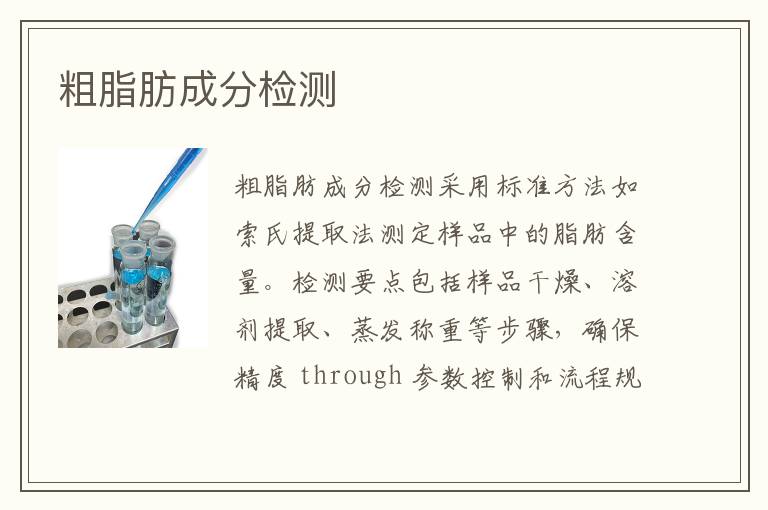 關(guān)鍵詞:粗脂肪成分測試范圍,粗脂肪成分測試案例,粗脂肪成分測試儀器